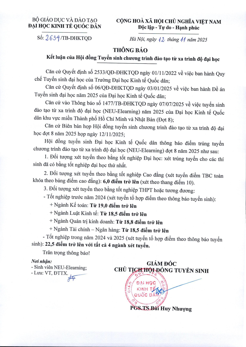 Thông báo điểm trúng tuyển đợt 8 năm 2025