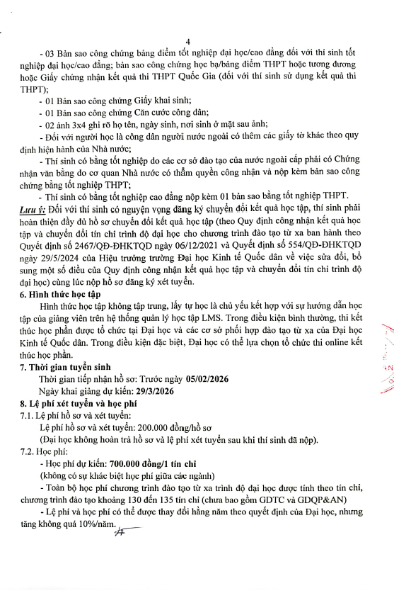 TRUNG TÂM ĐÀO TẠO TỪ XA – ĐẠI HỌC KINH TẾ QUỐC DÂN chính thức tuyển sinh ĐỢT 1 năm 2026 tại HÀ NỘI và đợt 2 tại HCM, Nhật Bản.
