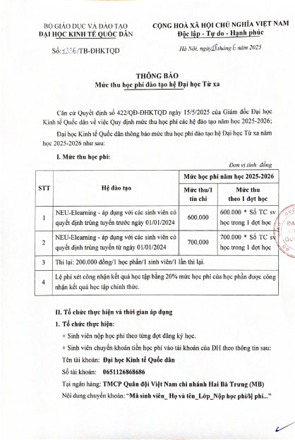 THÔNG BÁO HỌC PHÍThông báo mức thu học phí từ xa năm học 2025-2026 Posted on 25/03/202609/04/2026 by decadmin Thông báo nộp chứng chỉ giáo dục thể chất giáo dục quốc phòng năm 2026 Thông báo mở môn 08032026