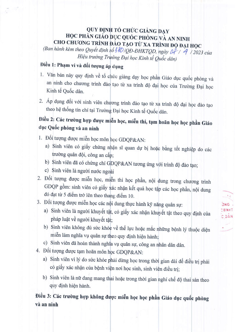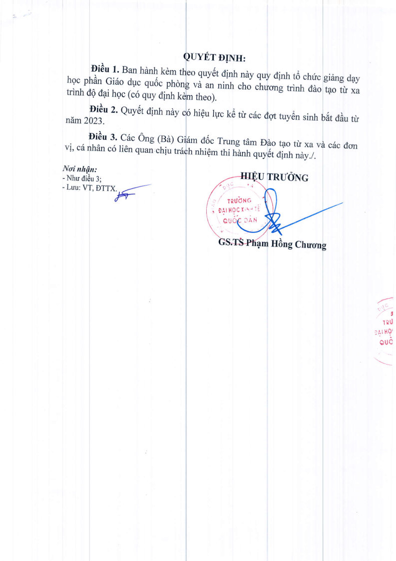QUY ĐỊNH QUY CHẾ ĐTTXQuyết định về việc ban hành quy định tổ chức giảng dạy học phần Giáo dục quốc phòng và an ninh cho chương trình đào tạo từ xa trình độ đại học Posted on 09/04/2026 by decadmin Quyết định về việc ban hành Quy chế công tác người học tại trường Đại học tại trường Đại học Kinh tế Quốc dân Quyết định về việc ban hành quy định tổ chức giảng dạy học phần Giáo dục thể chất cho chương trình đào tạo từ xa trình độ đại học